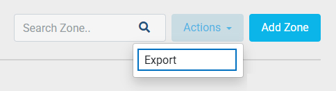 - Click on the Actions option in the top-right corner. There, you will find the Export option. Click it to export the Zones in Excel format.