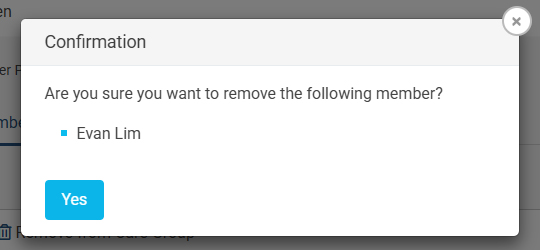 2. Click on Remove from Care Group. A confirmation modal will appear asking if you want to remove the member from the care group. Click Yes to confirm and remove the member.