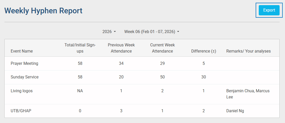 • Additionally, you can export the report by clicking the Export button in the top-right corner.