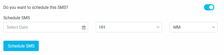 • Instead of sending immediately you can schedule the SMS. Turn the Do you want to schedule this SMS? switch then schedule date and time. Finally press on Schedule SMS button to commit the scheduling submission. All scheduled SMS will be listed on the scheduled SMS page. In this page you can modify the existing Scheduled SMS.