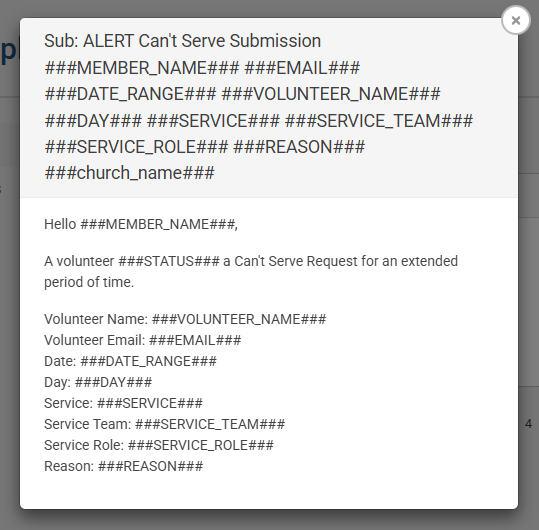 - View the selected Email Template in this modal to read its full subject and message body