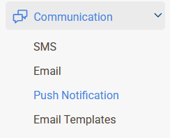 Go to the Communication tab on the left panel, from there go to the Push Notification directory.