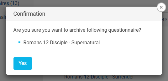 When you click the "Archive" option, a confirmation pop-up appears. Click "Yes" to successfully archive the questionnaire.