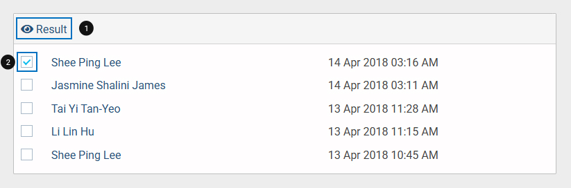 - To view a result of a report select the checkbox next to the Member name to reveal the "Result" option in the top bar. Click on it to view the report result.