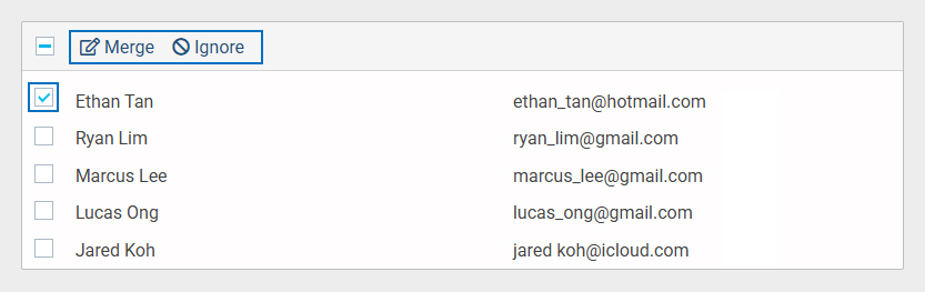 5. In Non-Members section, select the checkbox next to the name to reveal the action options in the top bar. From there, choose the action you want to perform, such as Merge, or Ignore.