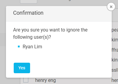 7. When you click the Ignore option, a confirmation message will appear asking whether you want to ignore the user. Click "Yes" to confirm and permanently ignore the user.