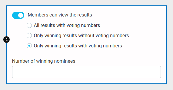 • Number of winning nominees only appears when you turn on “Members can view the results” and pick either of the winners-only result types : Only winning results without voting number and Only winning results with voting numbers
