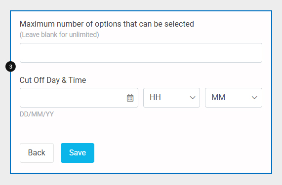 • “Maximum number of options that can be selected” is the setting where you can configure the maximum number of options a user is allowed to choose. Leave it blank to allow unlimited selections.
