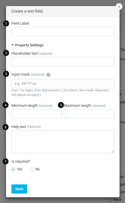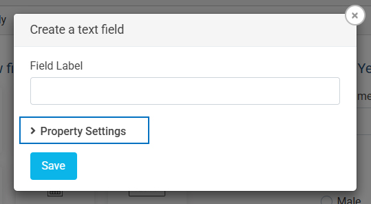 Note: In the input field configuration, you will find a Property Settings option. Click on it to expand additional configuration options for the input field.