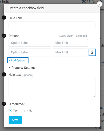 The Options section allows you to define multiple choices for Checkbox, Radio, and Select fields. These field types support multiple options that users can choose from.Option Label: