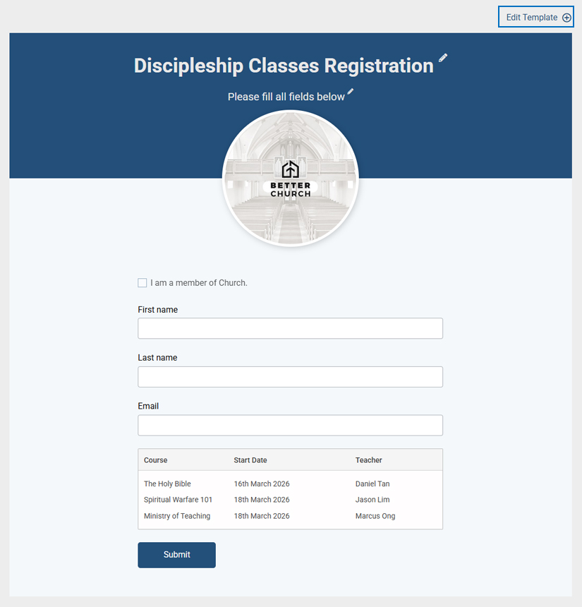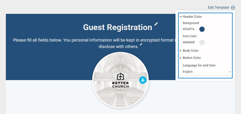 - Click on Edit Template to modify the following settings: