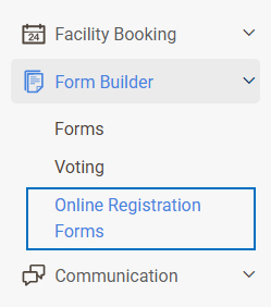 • Go to the Form Builder tab on the left panel, from there go to the Online Registration Forms directory.