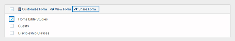 • Check the checkbox next to the form title to get access to multiple options from there click the Share Form option.